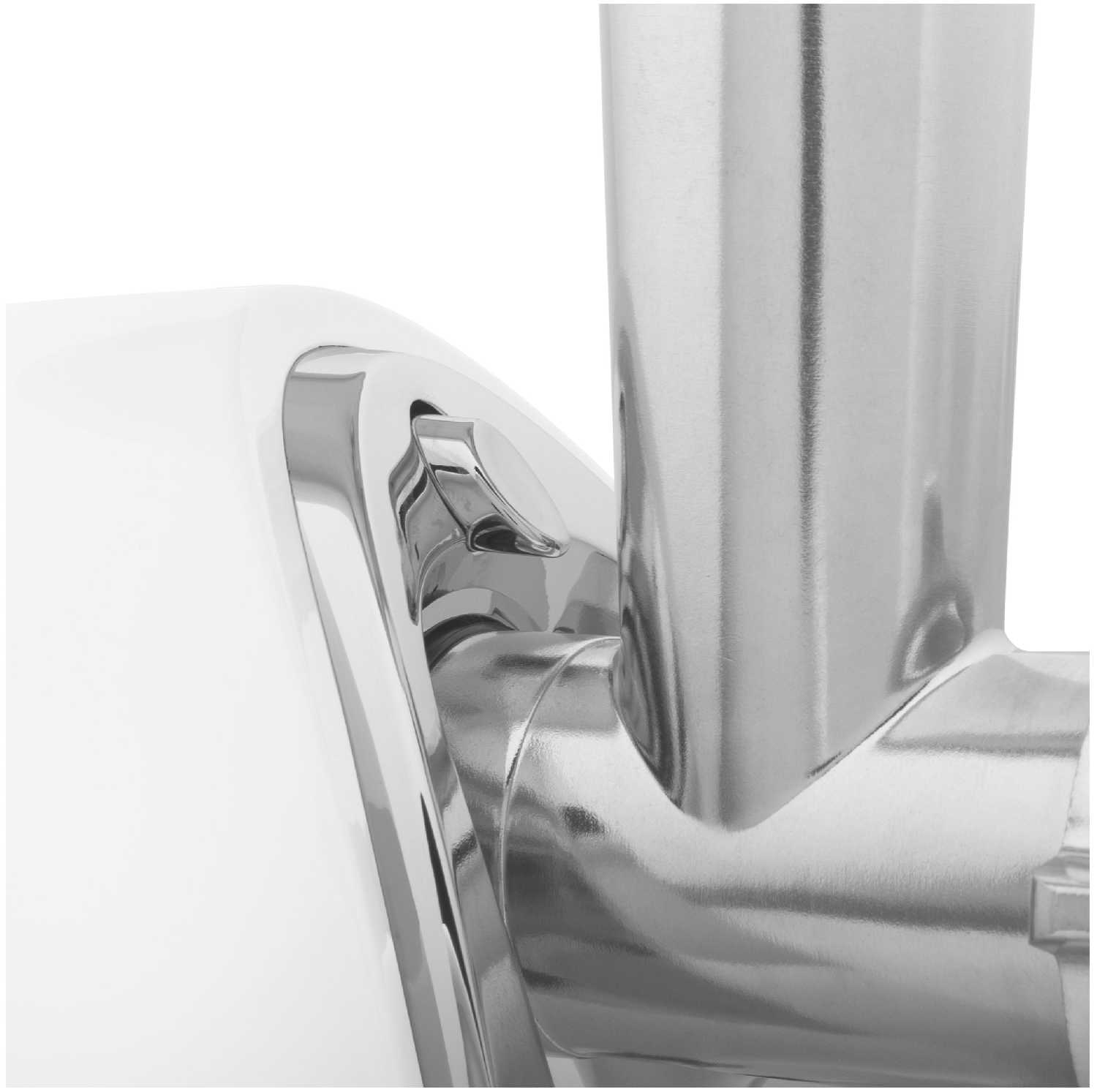 - + Понравился дизайн и цена. Мощность у нее не самая большая, но раотает эффективно, ножи острые и решетки хорошие. Много насадок в комплекте.