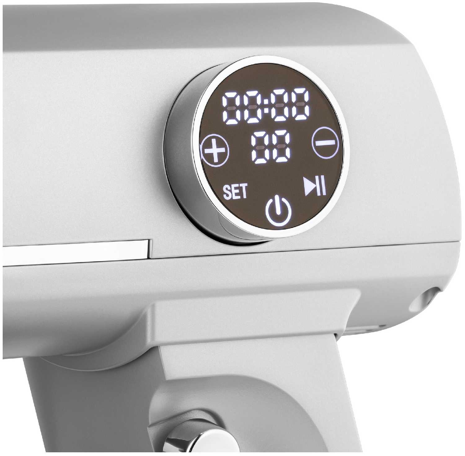- + Большой объем чаши, три насадки, сенсорное управление, алюминиевый корпус, 10 скоростей работы, защита от перегрева