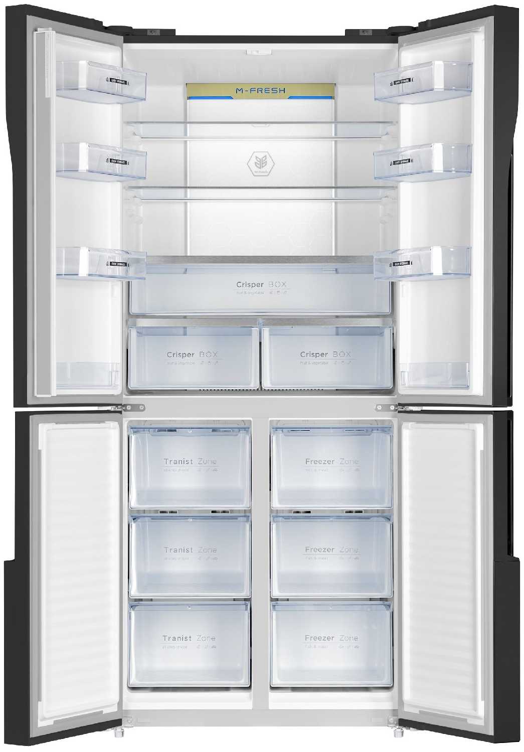 - Четыре отдельные дверцы удобны для доступа, уплотнители надежно держат холод.