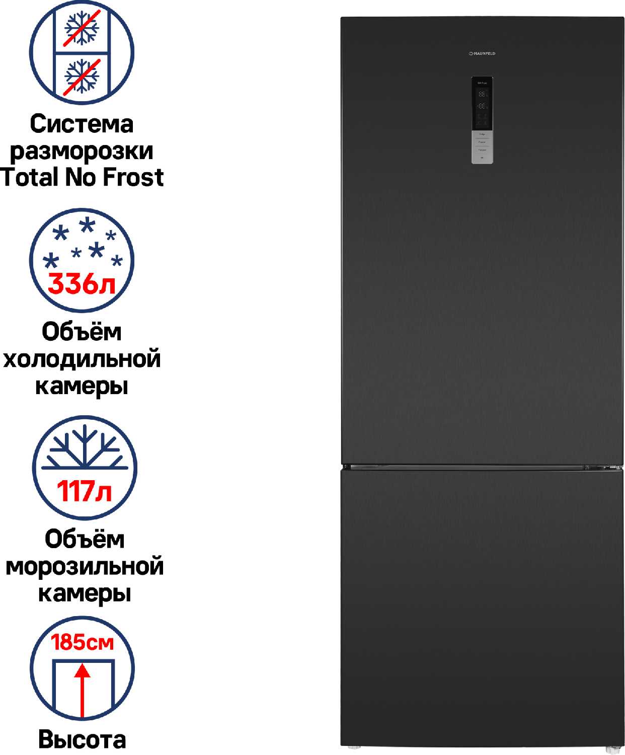 Отзывы о Холодильник двухкамерный MAUNFELD MFF1857NF [Total No Frost, 453 литра]