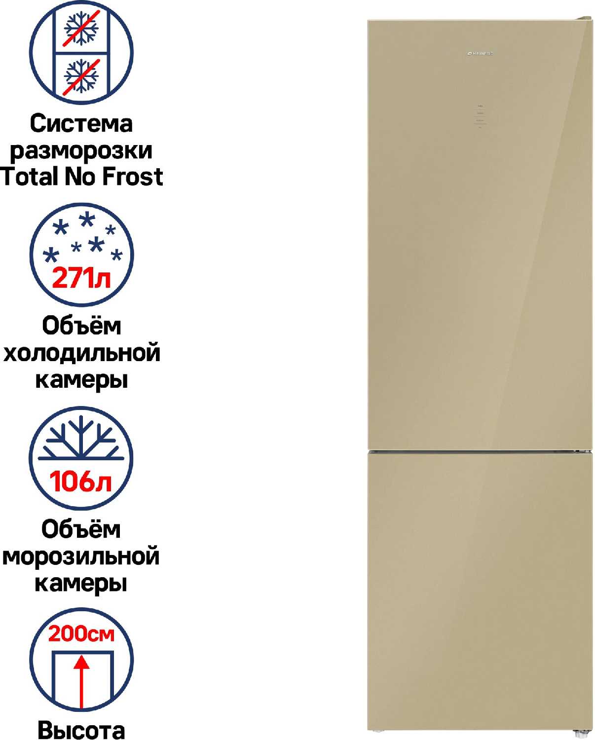 | Дополнительная информация : | полезный объём 351 л, полный NoFrost в холодильном и морозильном отделениях, сенсорное управление, материал фасада - стекло |