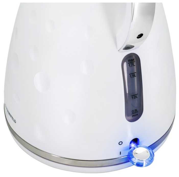 - Полный объем 1,7 л закипает за 4-6 минут, полупустой еще быстрее, мощность 2,2 кВт обеспечивает высокую скорость даже для семьи из 3-4 человек.