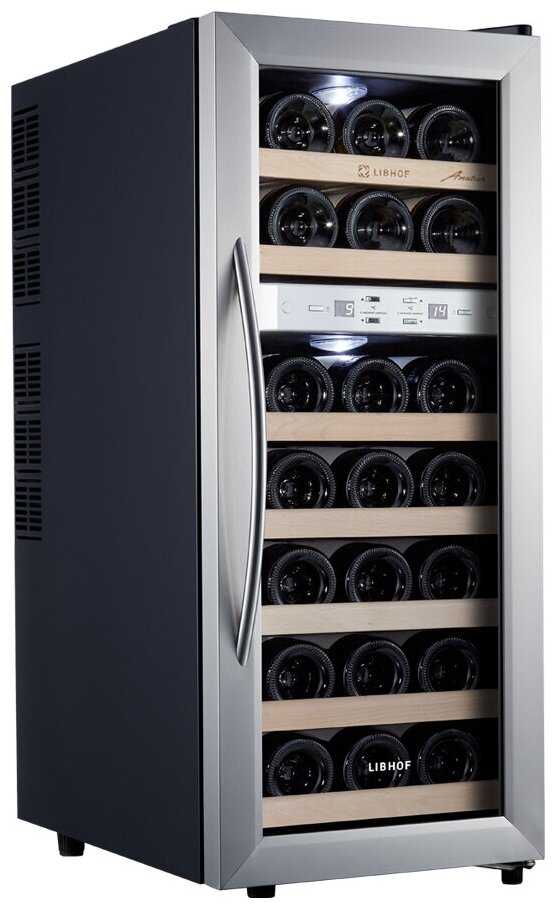 Точность температурного контроля и климатические условия: Фактическая температурная точность вызывает нарекания у части пользователей: при установленном значении 13°C реальные показатели составляют 14,5–15,5°C, что подтверждено измерениями сторонними термометрами. Влажность внутри камеры не регулируется штатно и без дополнительных мер (установки лотка с водой) падает до 30–40%, что критически низко для правильного хранения вина; пользователи manually доводят этот показатель до 60–70%. Система вентиляции обеспечивает равномерное распределение температуры по всему объёму, что исключает образование температурных градиентов между полками. Компрессорный тип охлаждения обеспечивает стабильность поддержания заданных параметров, но периодически может генерировать слышимый шум при запуске. Функция звукового оповещения активируется при отключении электроэнергии или длительном открытии дверцы, предупреждая о риске нарушения температурного режима. LED-дисплей отображает установленные значения, однако его расположение признано неэргономичным — для считывания информации часто требуется наклоняться или открывать дверцу.