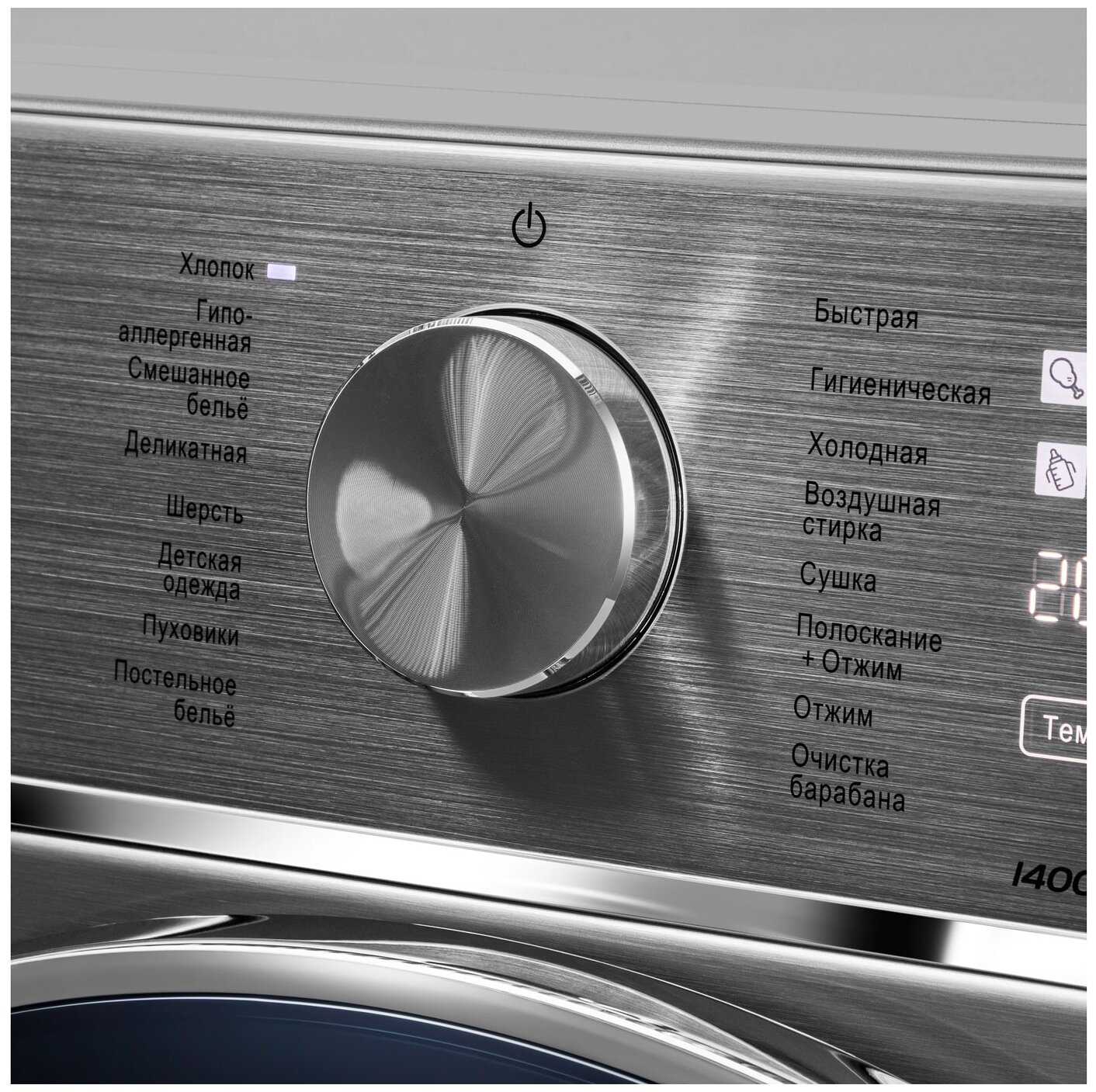 - Ручная корректировка скорости отжима (до 1400 об/мин) для разных типов тканей.