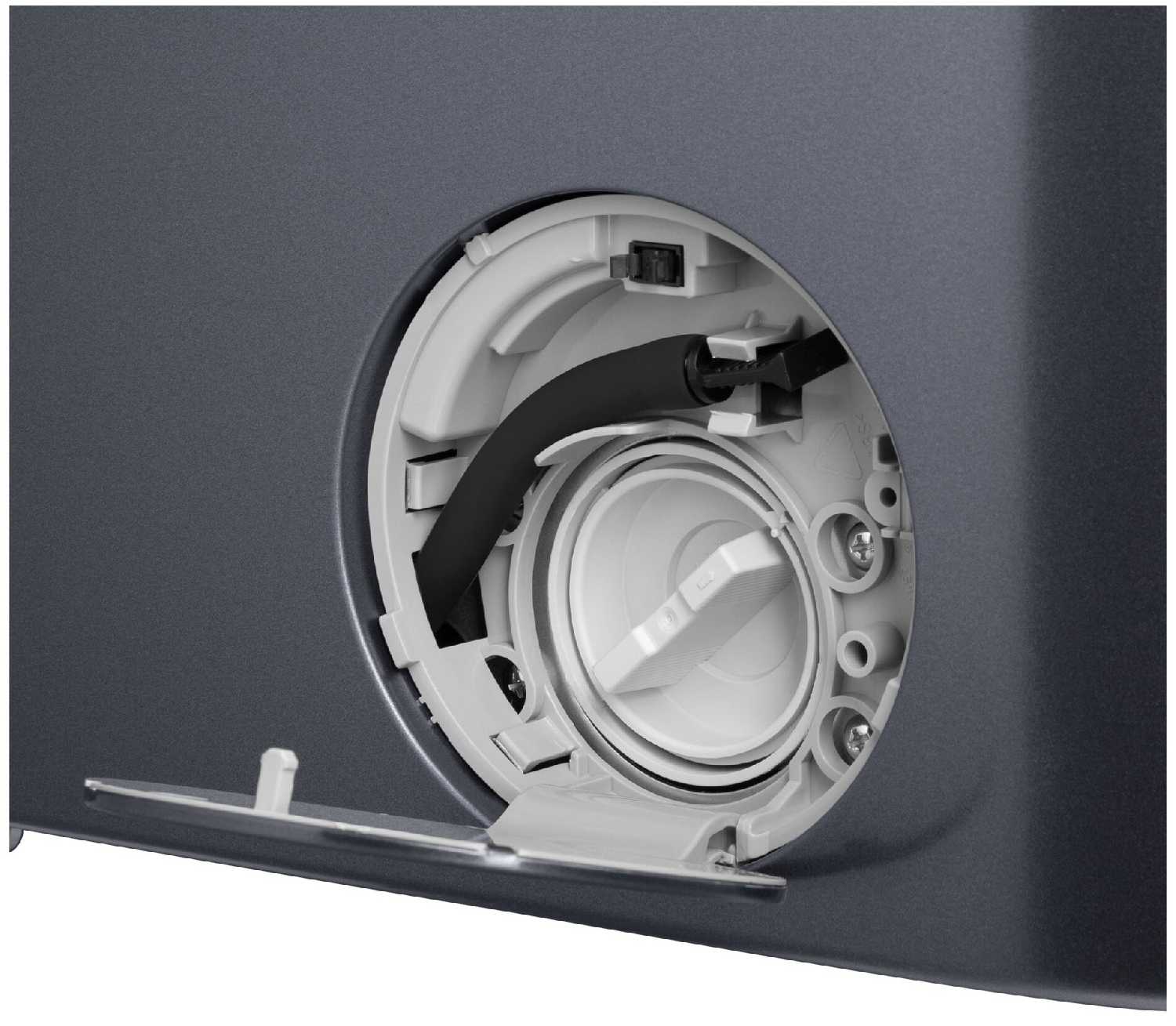 - Фильтр сливного насоса расположен за декоративной панелью, для доступа требуется полный демонтаж нижней крышки.