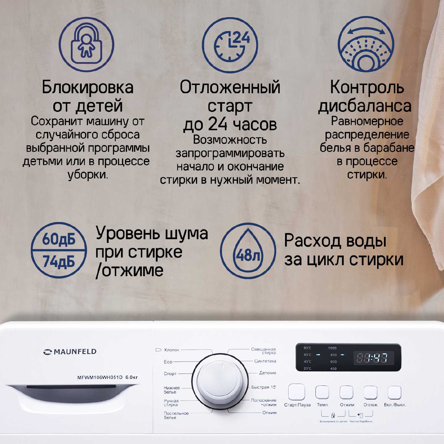 Обзоры и руководства на MAUNFELD MFWM106WH051D