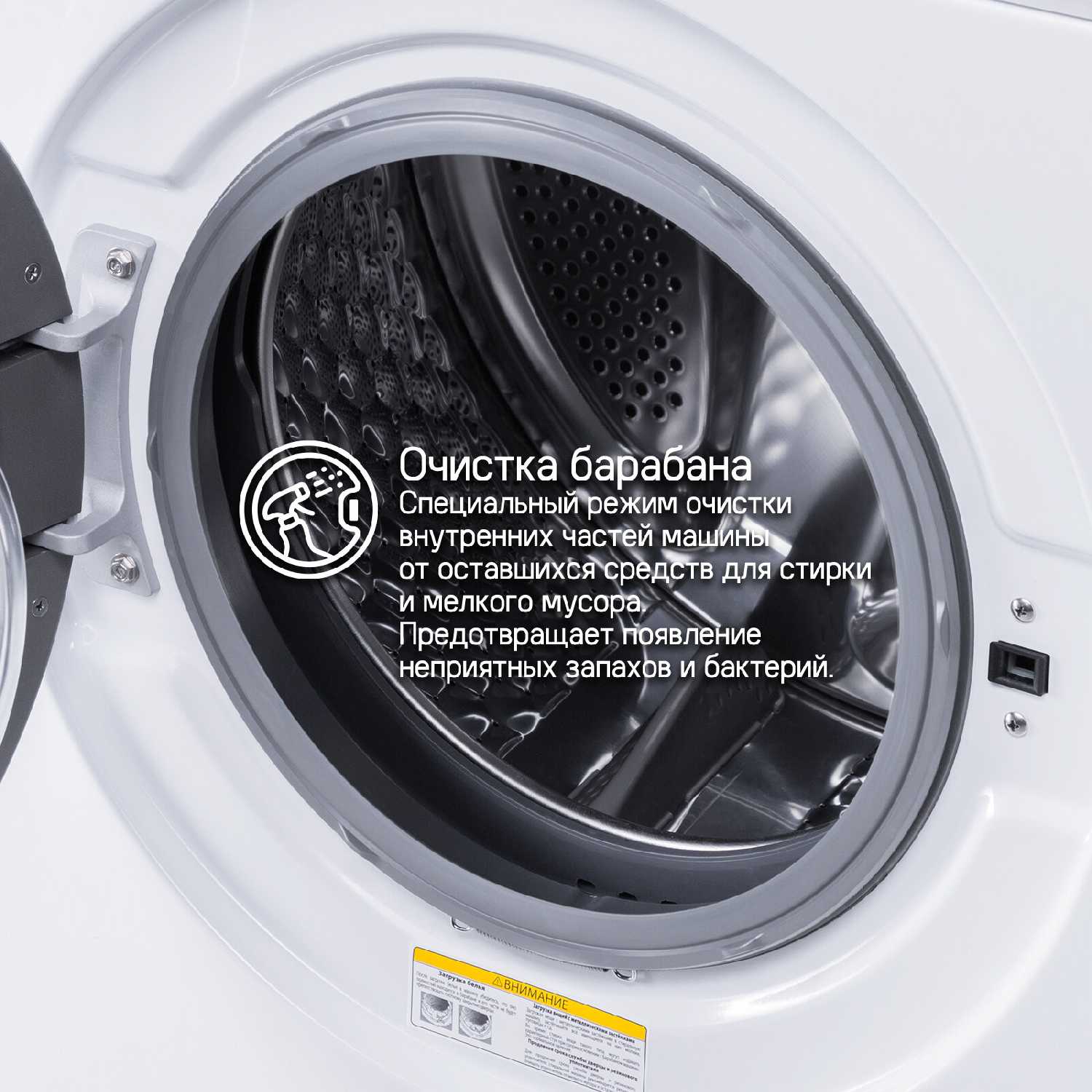 - Обеспечивает равномерное распределение белья в барабане, что предотвращает сминание и способствует тщательному выполаскиванию моющих средств.