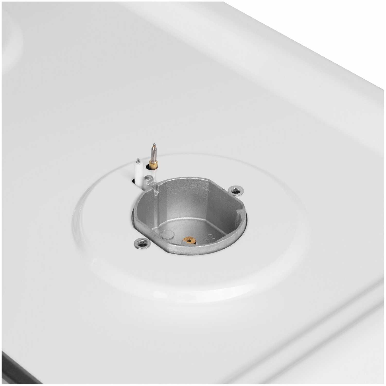 Газовый ввод расположен неудачно т.к. при подключении гибкой подводкой требуется её загибать на 90 градусов чтоб не задеть выступающую заднюю стенку. Либо нужно ставить дополнительный угол, но это решение не даст близко к задней стене установить плиту.