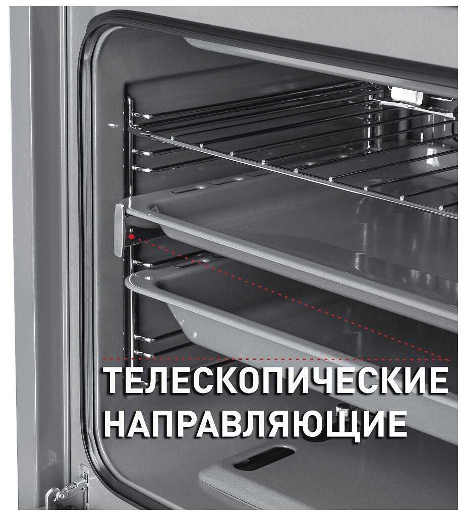 - + Отлично протекает блюда. Зажигается без проблем, пламя не тухнет. Отлично вписался в шкаф ИКЕА, даже осталось место для ящика 20 см. Прекрасно моется. Вместительный, готовлю сразу на двух уровнях. Такие опции, как конвектор и телескопические направляющие очень пригодились, аналогов с такими опциями за эту цену просто нет.