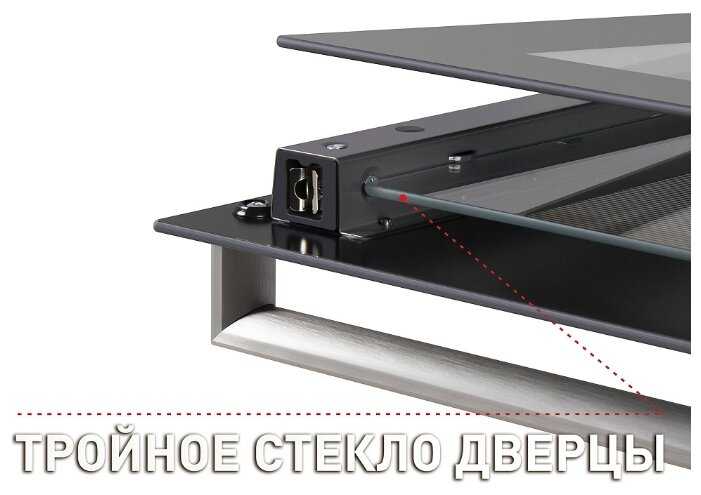 - Тройное стекло на дверце не обжигает, слабо нагревается.
