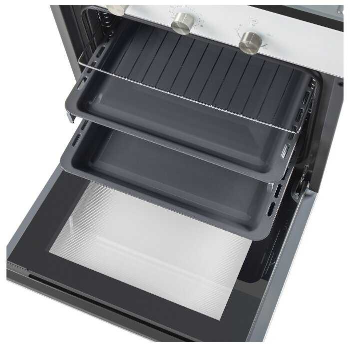 - В комплекте глубокий и обычный противни, решётка — ничего докупать не нужно.