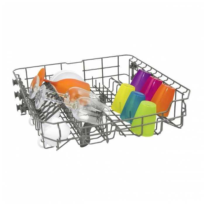 - + верхняя корзина регулируется по высоте, корпус из нержавеющей стали, низкий уровень шума, большая вместимость, защита от протечек