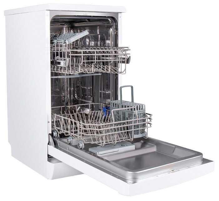 - Зависимость от настройки соли и ополаскивателя для жесткой воды, иначе возможны разводы или ржавчина на посуде.