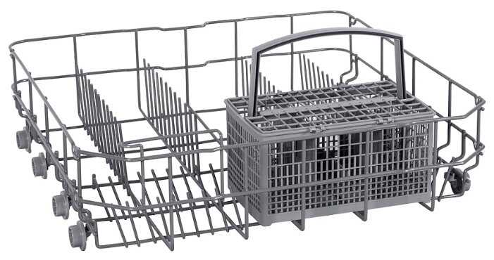 Удобные корзины, можно расставить посуду так, чтобы она хорошо помылась со всех сторон.