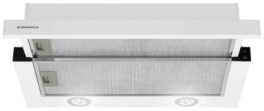 - + Вытяжка встраиваемая MAUNFELD VS FAST 50. Режим работы отвод и рециркуляция. Компактные размеры, выдвигается уловитель. Присутствует подсветка на две лампочки. Есть место для установки угольного фильтра. Размеры 556мм на 280мм.