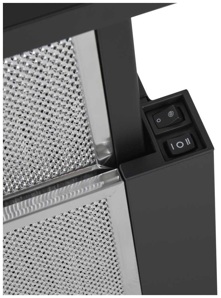 Смотрится эстетично, производительность заявлена высокая. Когда ее выдвгаешь, можно саму вытяжку отключить и оставить только освещение.