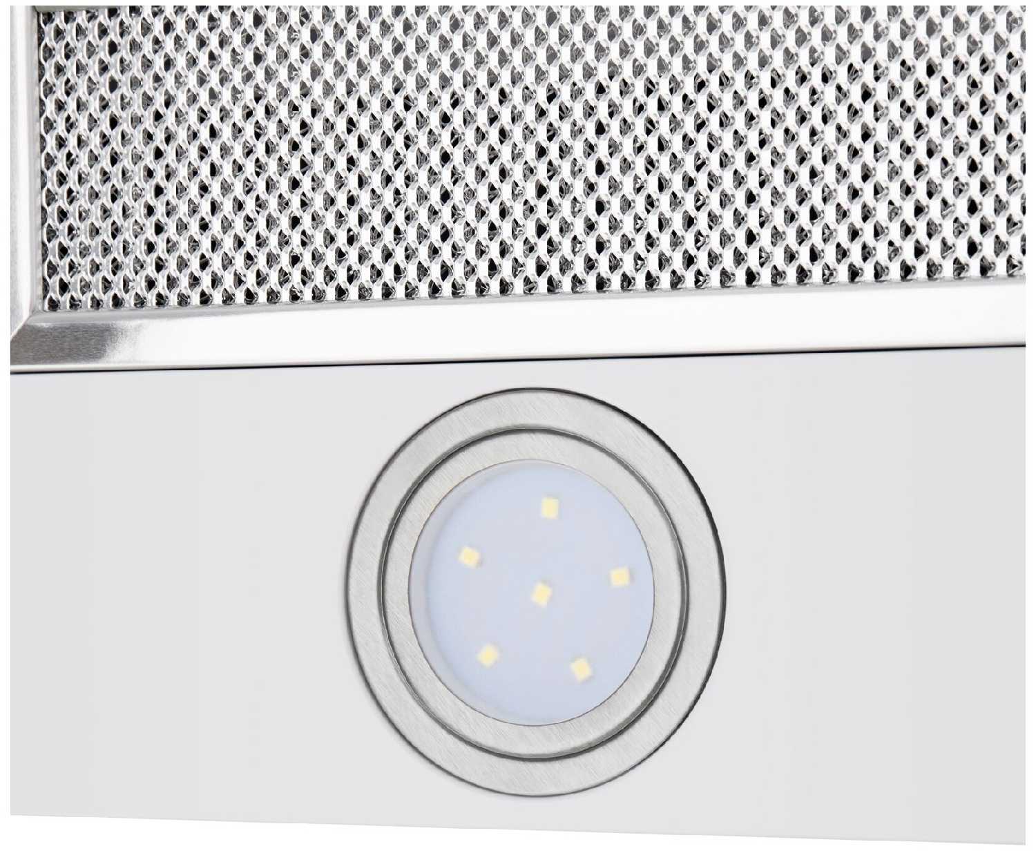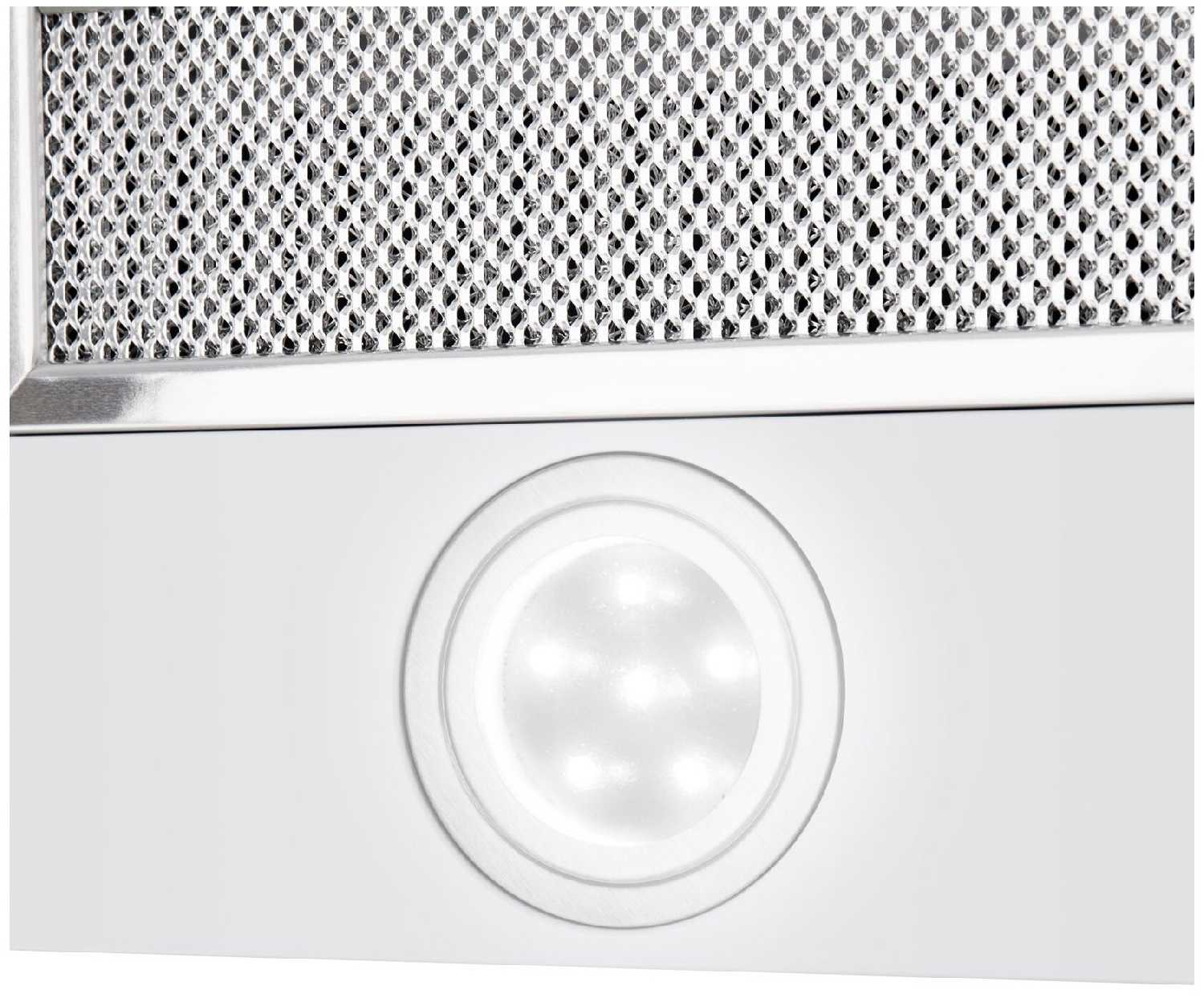 Интересный дизайн и приличная производительность. Шум в рамках разумного. Освещение не слишком яркое, но достаточное. Решетки можно мыть в посудомойке.