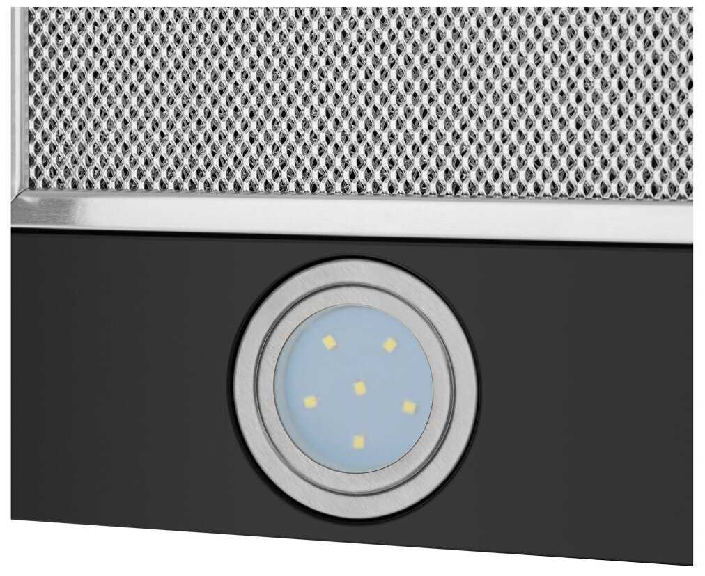 - Две встроенные LED-лампы с холодным белым светом (до 600 люмен) обеспечивают равномерное освещение варочной зоны.