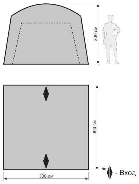 Особенности : | быстросборный, вентиляционные окна, ветрозащитная юбка, водонепроницаемость, наличие дна, окна, проваренные швы, проклеенные швы, усиленные углы |