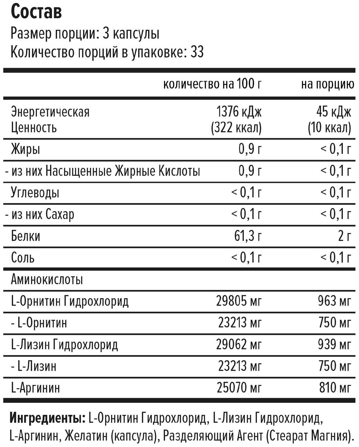 Основной ингредиент : | ГМК, аргинин, глутамин, глутаминовая кислота, лизин, орнитин |