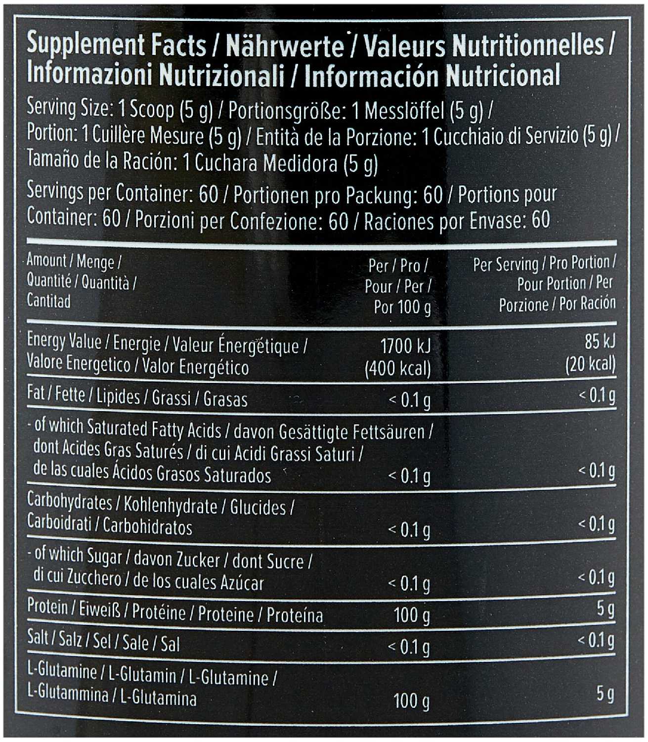 Дополнительная информация : | 60 порций, размер порции в г(мл): 5, назначение: способствует быстрому восстановлению ускоряет метаболические процессы обладает антистрессовым действием, рекомендации по применению: для получения одной порции смешайте 5 г порошка (1 мерную ложку) с водой, рекомендуется принимать одну порцию перед и одну порцию после тренировки, состав: нейтральный: L-Глутамин (100%), со вкусом: L-глутамин ароматизатор глицерин разделяющий агент (диоксид кремния) подкислитель (лимонная кислота) подсластители (цикламат натрия ацесульфам-к сахарин) пищевые красители (E110 E122 E124) |