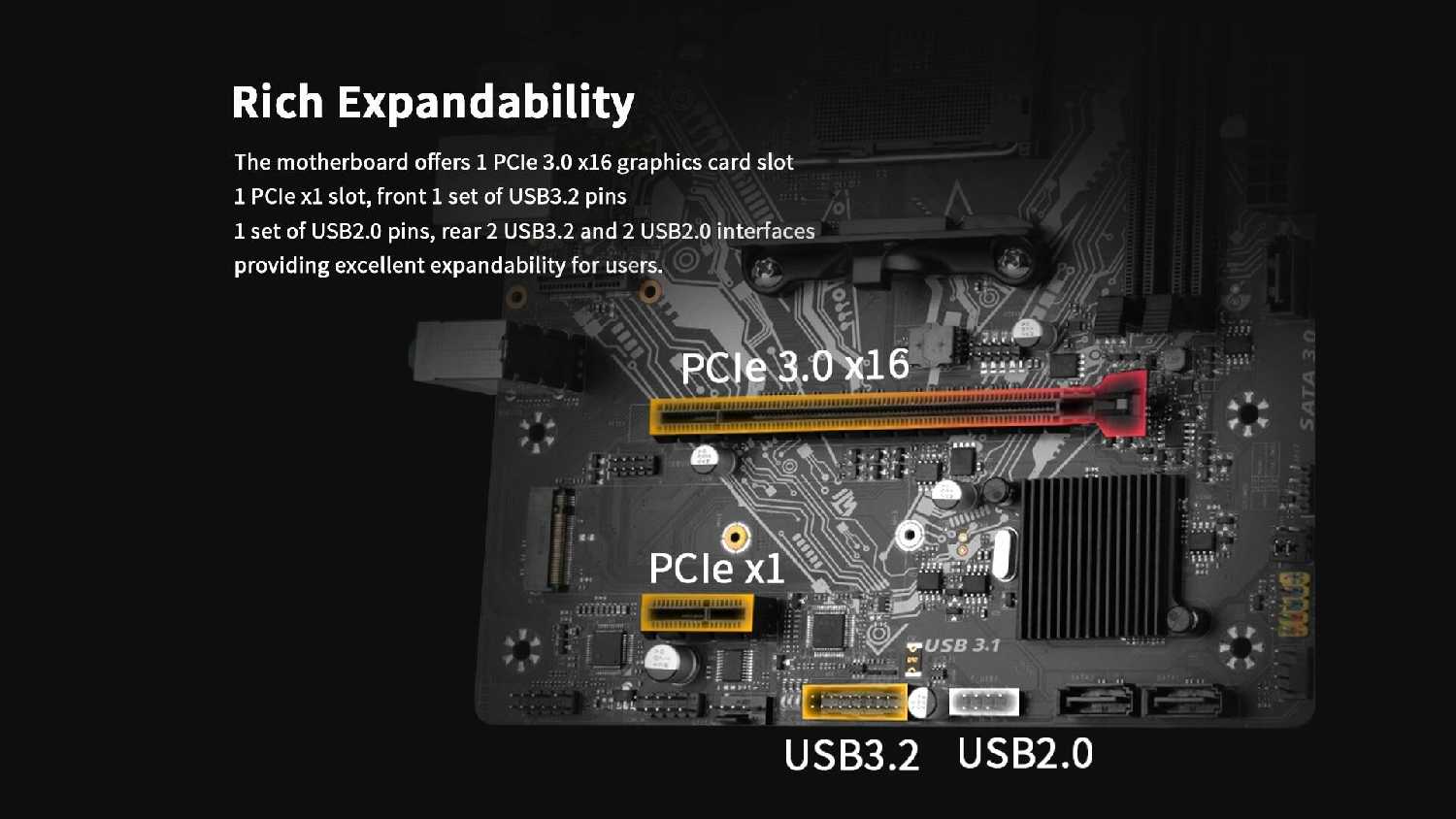 | Слоты PCI-E подробно : | PCI-E 3.0 x1, PCI-E 3.0 x16 |