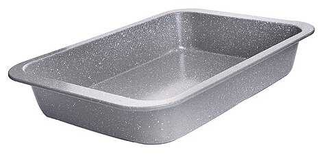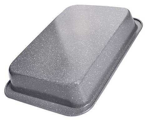 - + Хороший противень, покрытие надёжное, отлично отмывается. Хотя на дно всё равно кладу пергамент.
