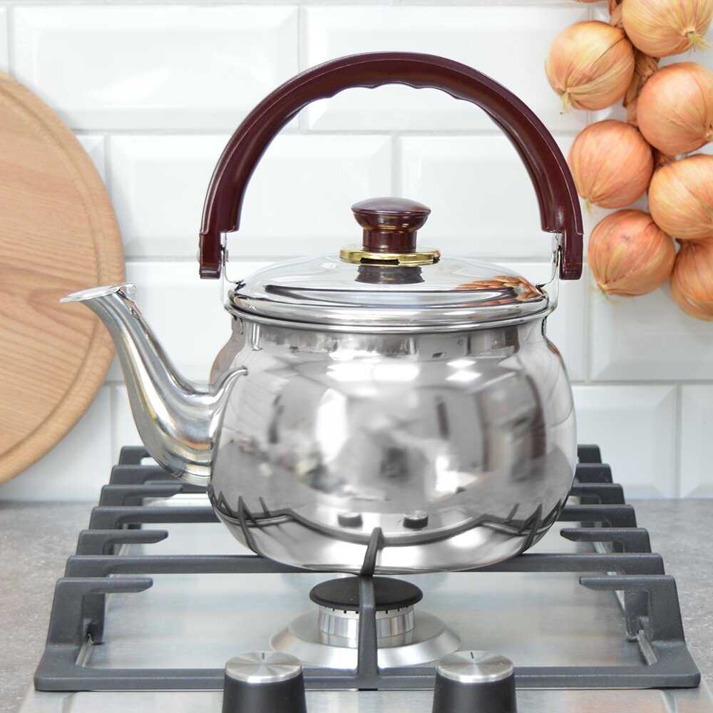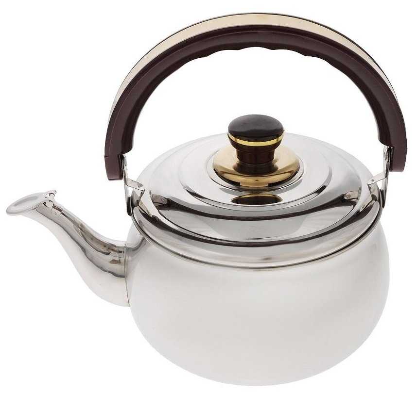- + Легкий 3х литровый чайник. Нержавейка. Подходит для газовой плиты. При аккуратном пользовании и уходе прослужит долго.