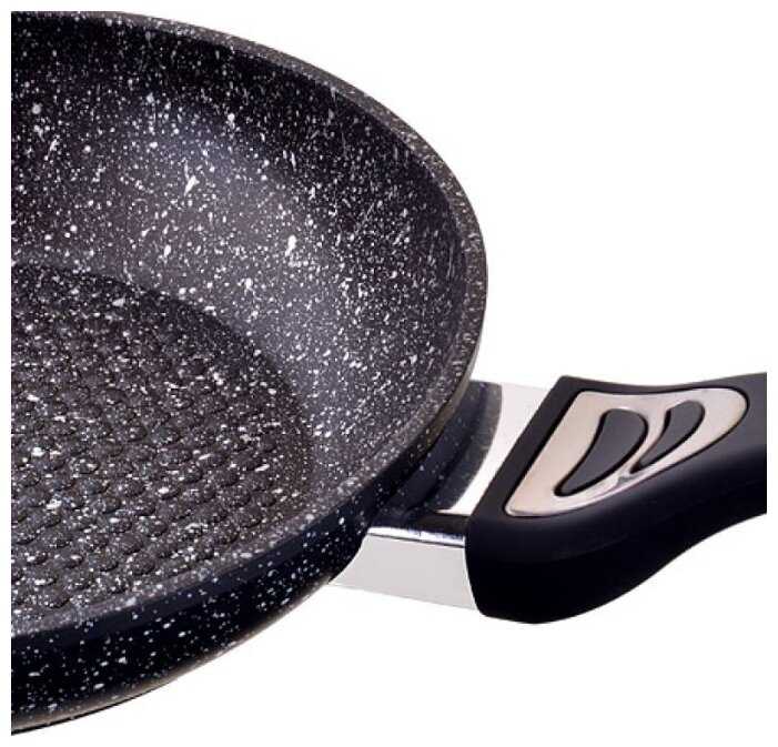 Я как хозяйка выбираю вещи для кухни качественно. Данная сковорода - не исключение. Отлично справляется со своей функцией, покрытие внутри антипригарное из гранита, еда не прилипает. Диаметр 24 см вполне устроил, такого размера и хотела, не больше.