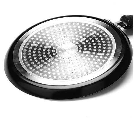 - + отличная сковорода,блинчики получаются равномерно пропеченные,ничего не пригорает,легко снимается
