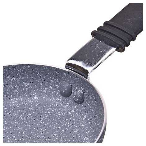 сама сковорода сделана из настолько тонкого металла, что ручка перевешивает сковороду. даже с собержимым. из-за чего приготовить на ней нет физической фозможности. выброшенные на ветер деньги.