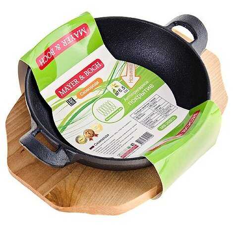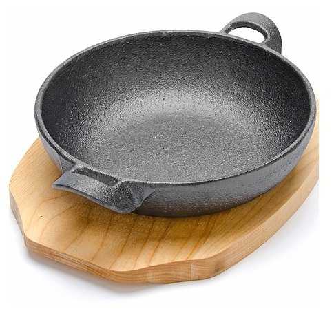| Подробная комплектация : | сковорода, деревянная подставка, упаковка |