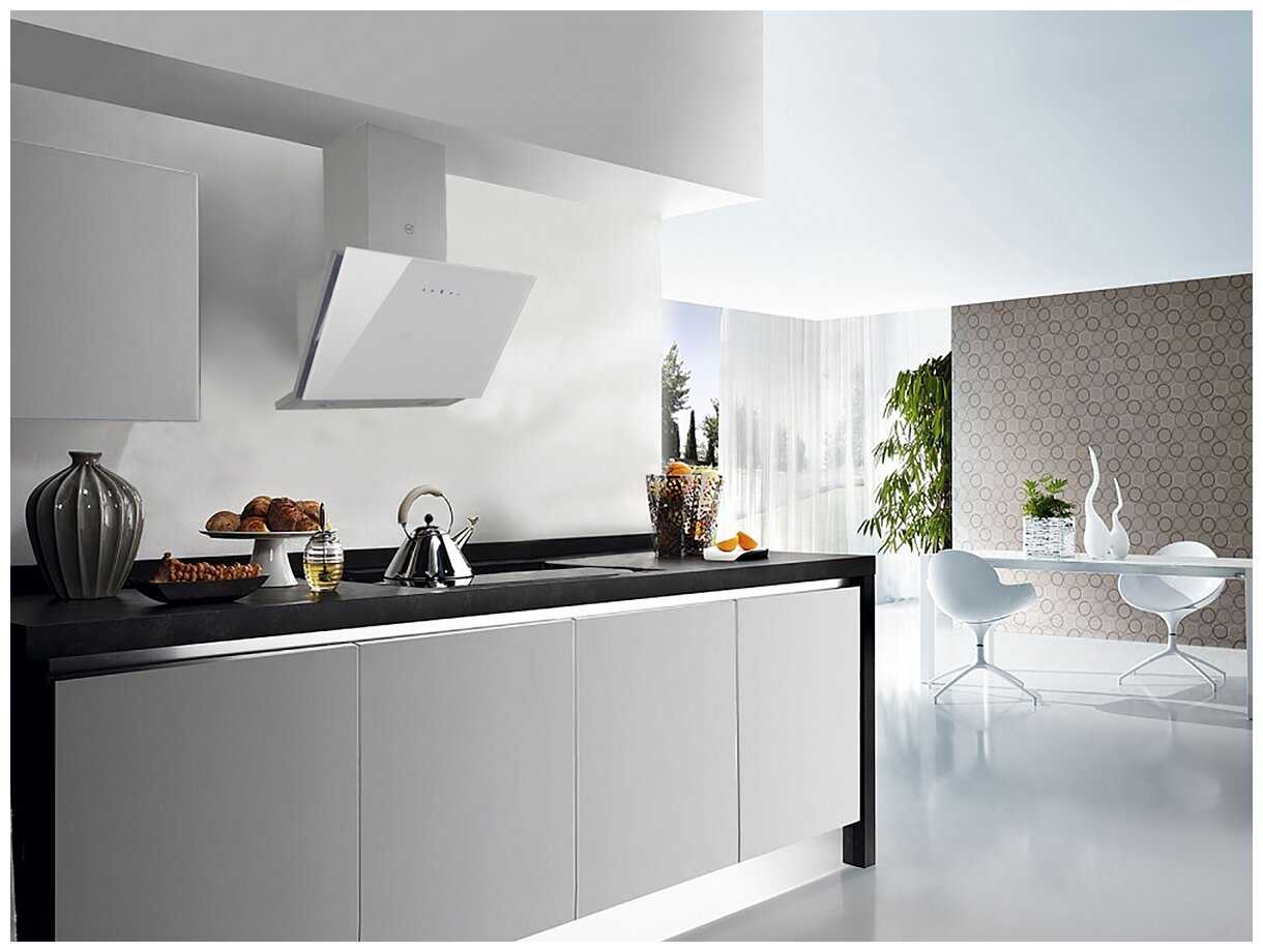 Вытяжка выглядит очень монументально, практически парящий айсберг над варочной поверхность плиты. Роскошно смотрится на кухне, выполненной в современном стиле. Вытяжка сделана из металла и высококачественного прочного стекла. Стекло хорошо очищается специализированными моющими средствами.