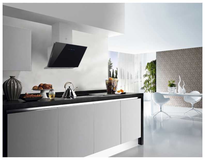 Мне очень понравилась именно эта модель вытяжки. Я практически в нее влюбилась. У меня большая светлая кухня и эта модель вытяжки прекрасно вписывается в интерьер. Стеклянные панели добавляют вытяжке воздушности и легкости. Вытяжка при работе почти совсем не слышна даже если работает на полных оборотах.