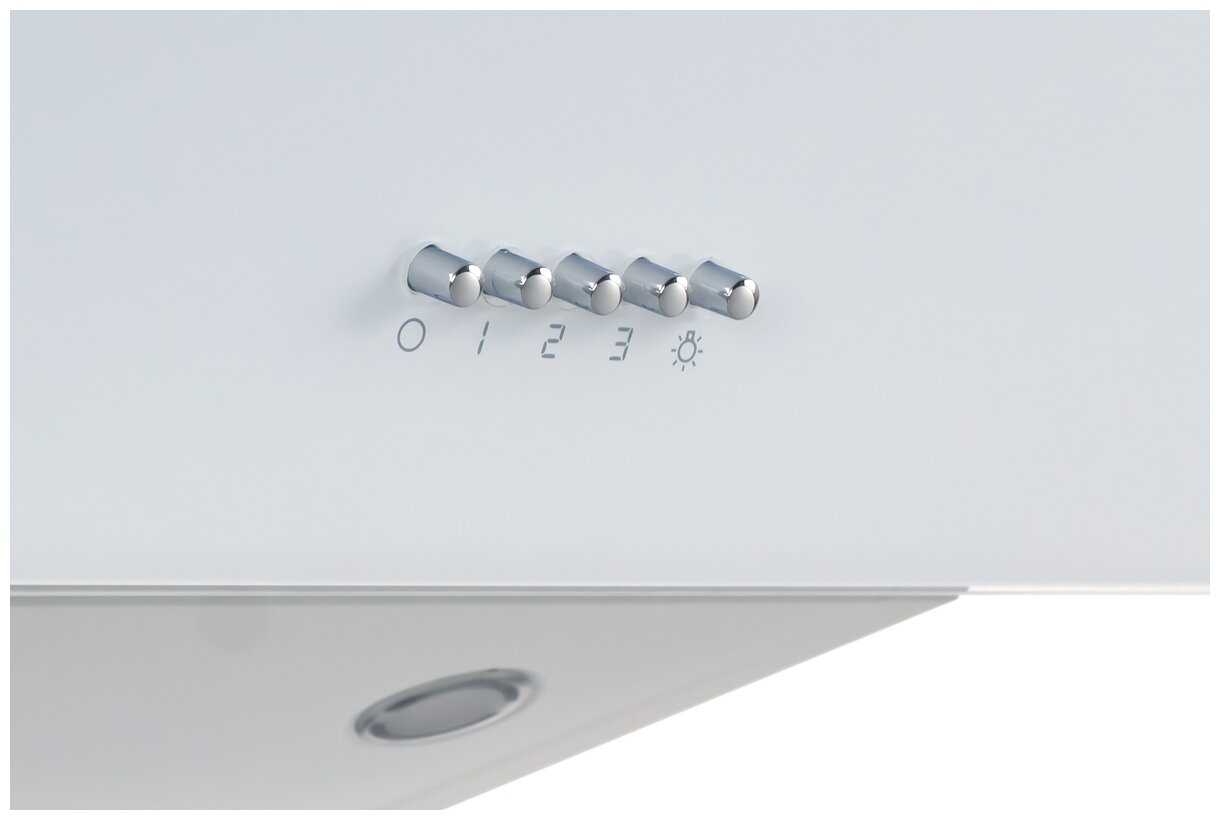 И дизайн хороший, и цвет необычный. По факту выбрали мы модель вытяжки не сразу, смотрели несколько вариантов. Управление стандартное кнопочное. Есть три скорости работы. На первой скорости запахи уходят немного медленнее, а когда включаешь третью, то всё уходит быстро.