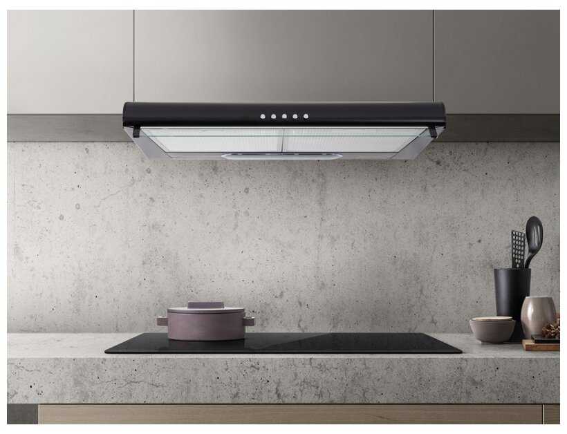 - + Вытяжка на 60, установили в режиме отвода. Компактная, отлично вписалась в интерьер кухни. Радует высокая производительность и пониженный уровень шума, особенно в сравнении с нашей предыдущей вытяжкой.