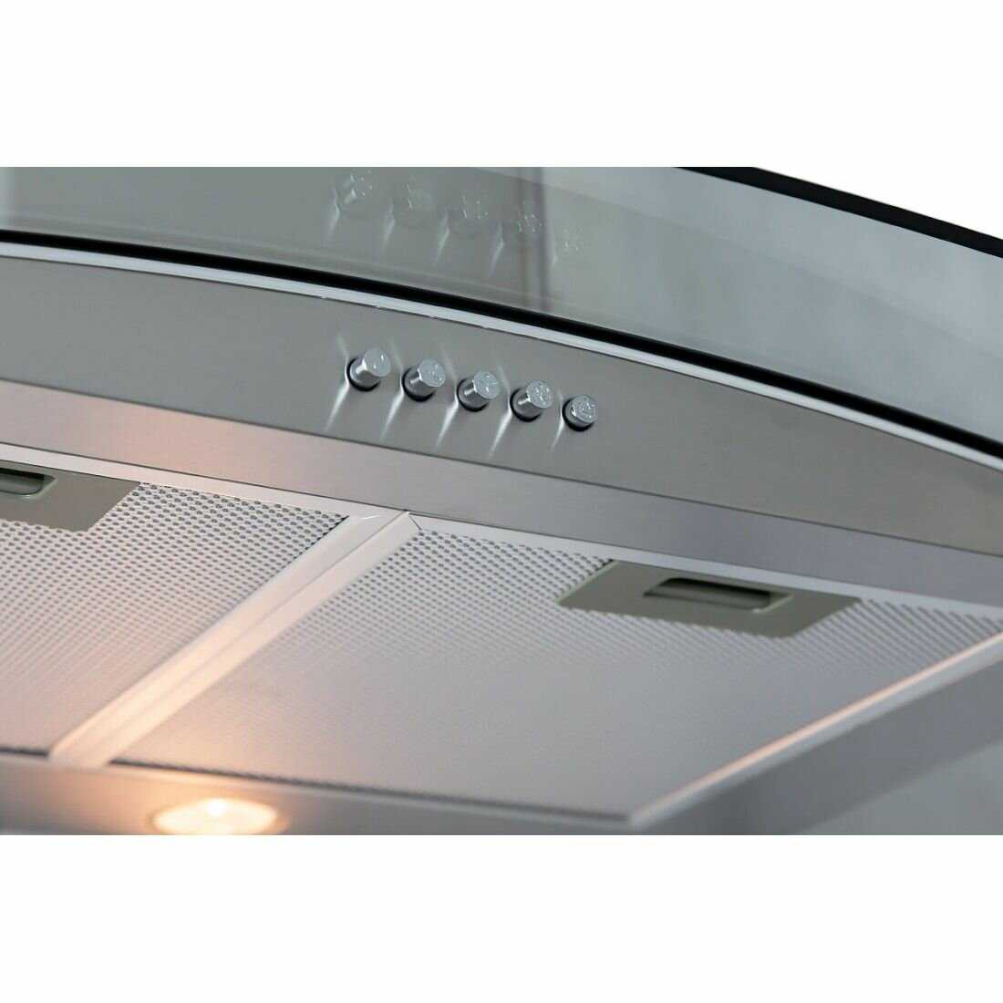 Сочетание металла и стекла смотрится очень органично. Вытяжка достаточно производительная и мощная. Работает без лишнего шума и грохота. Даже на максималках на кухне можно все также комфортно общаться. Панель управления для меня находится немного высоковато приходится вставать на носочки, чтобы дотянуться до кнопок. Внизу яркая подсветка. Свет попадает точно на варочную панель. Сенсор очень отзывчивый, не приходится несколько раз тыкать на одну и туже кнопку. Конструкция наклонная, очень хорошо экономит пространство на кухне и защищает мою голову об вечных ударов об угол вытяжки.