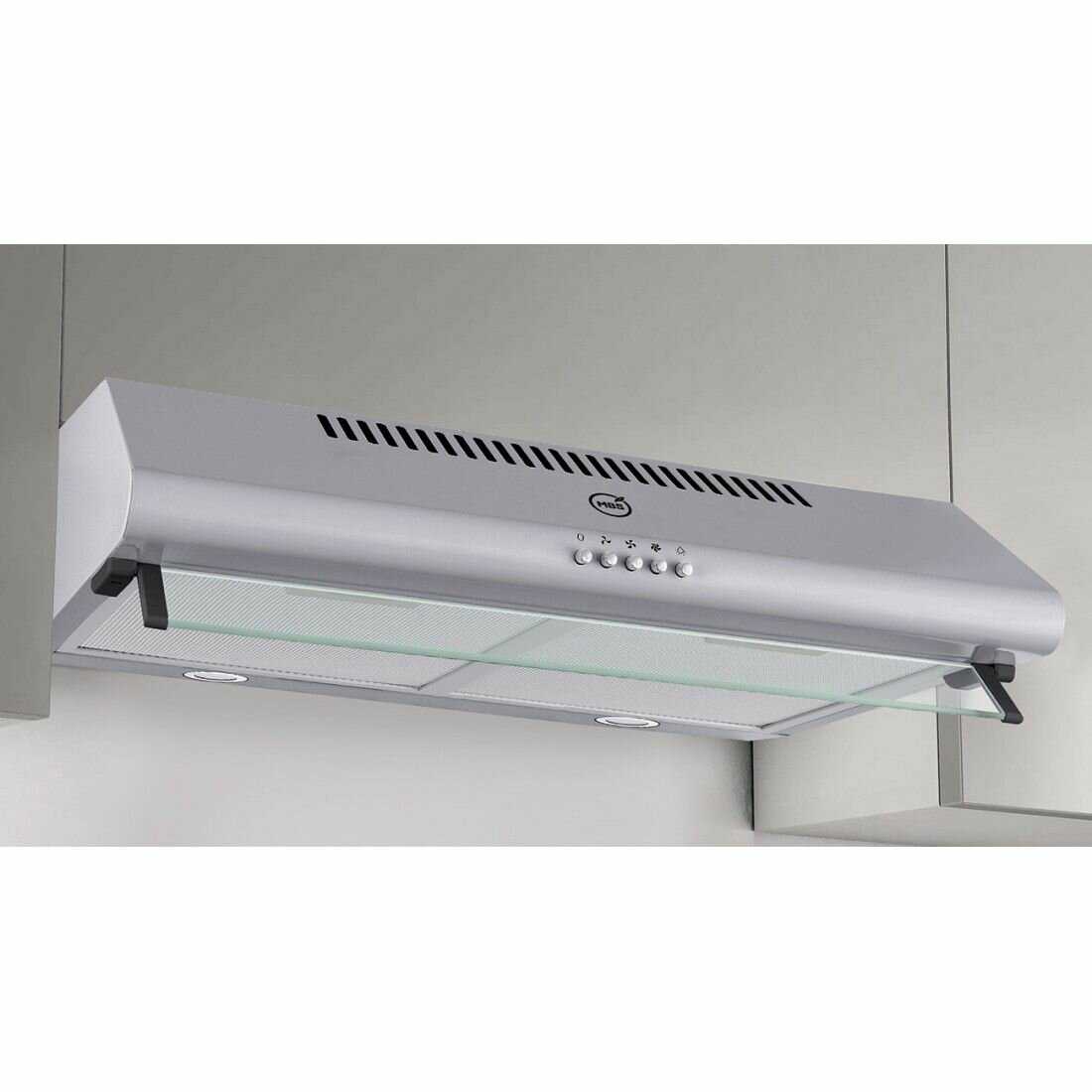 - - Метал тонковатый! Поэтому стандартное крепление надо дорабатывать! Я просверлил дополнительно по 2 отверстия по бокам и закрепил прямо к шкафчикам через резиновые проставки с шайбами! При этом вытяжка встала жестко и не дребезжит!