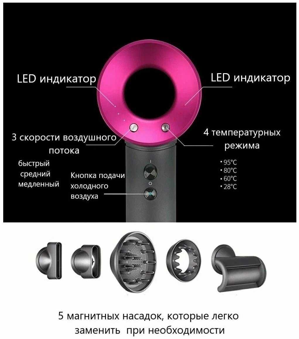 Сравнивал с Дайсон. Вот в одной руке этот фен, в другой Дайсон. Один в один. Да, есть штрихи, но сходу их найти не получится. Насадки подходят) и работает так же. Единственное, есть тут ионизация или нет не знаю. Короче, он сушит волосы так же, подчёркиваю, так же. Так что если нравится дизайн Дайсон, а цена в 40К не нравится, смело берём этот. Но имейте ввиду, что коробка должна выглядеть именно так, как на фото. Суперфен должно быть написано не черным, а сиреневым (или как называется этот цвет)). Тогда насадки будут качественные, а шнур длинным.