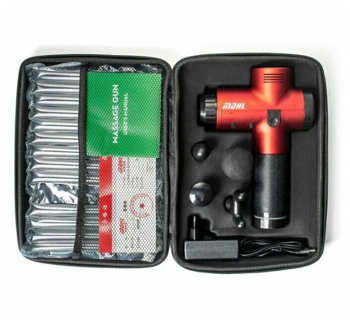 Характеристи MDHL Массажный пистолет. Перкуссионный ударный массажёр. Красно-чёрный..