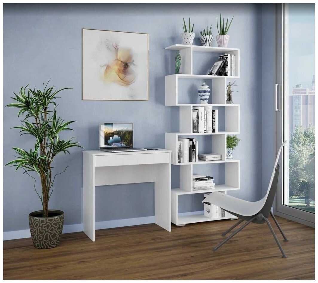 На фото стол и стеллаж, название мебель комплекс, по факту это только маленький стол. На столько маленький что одномоментно не помещается учебник и тетрадь.