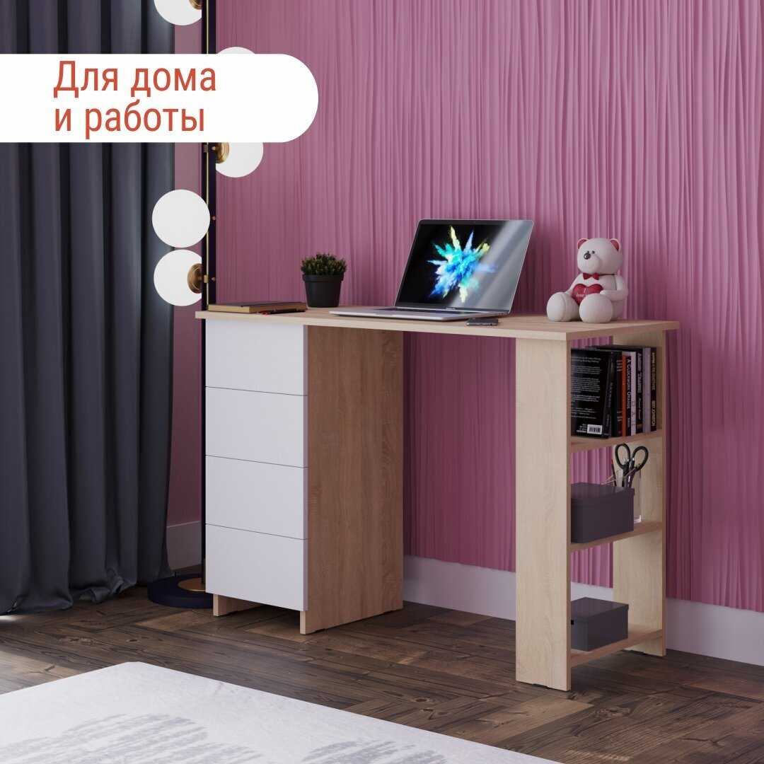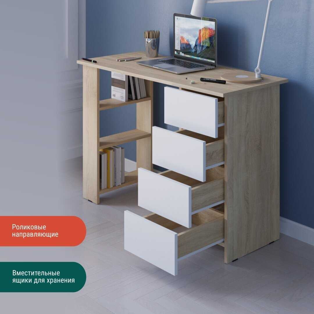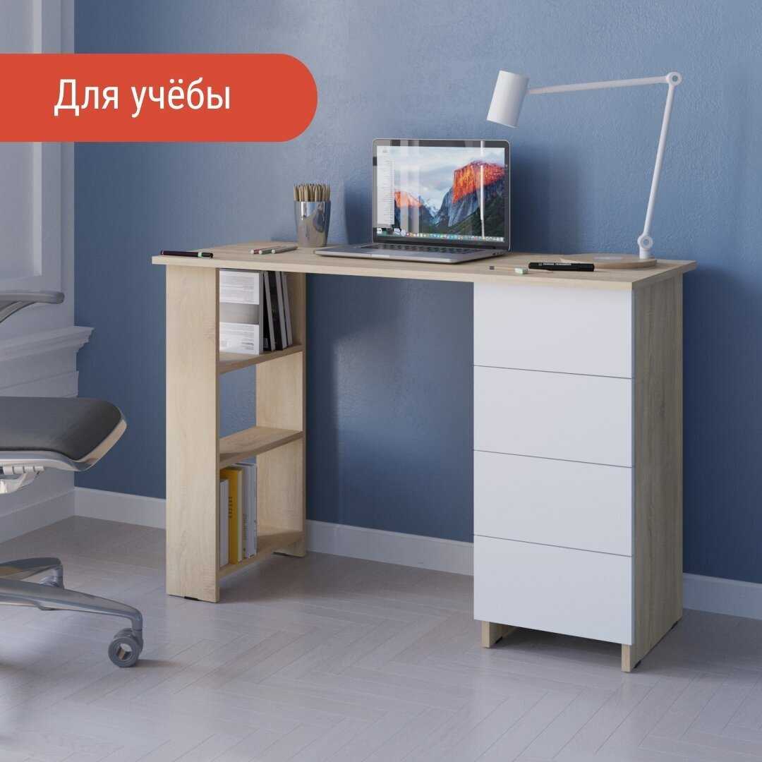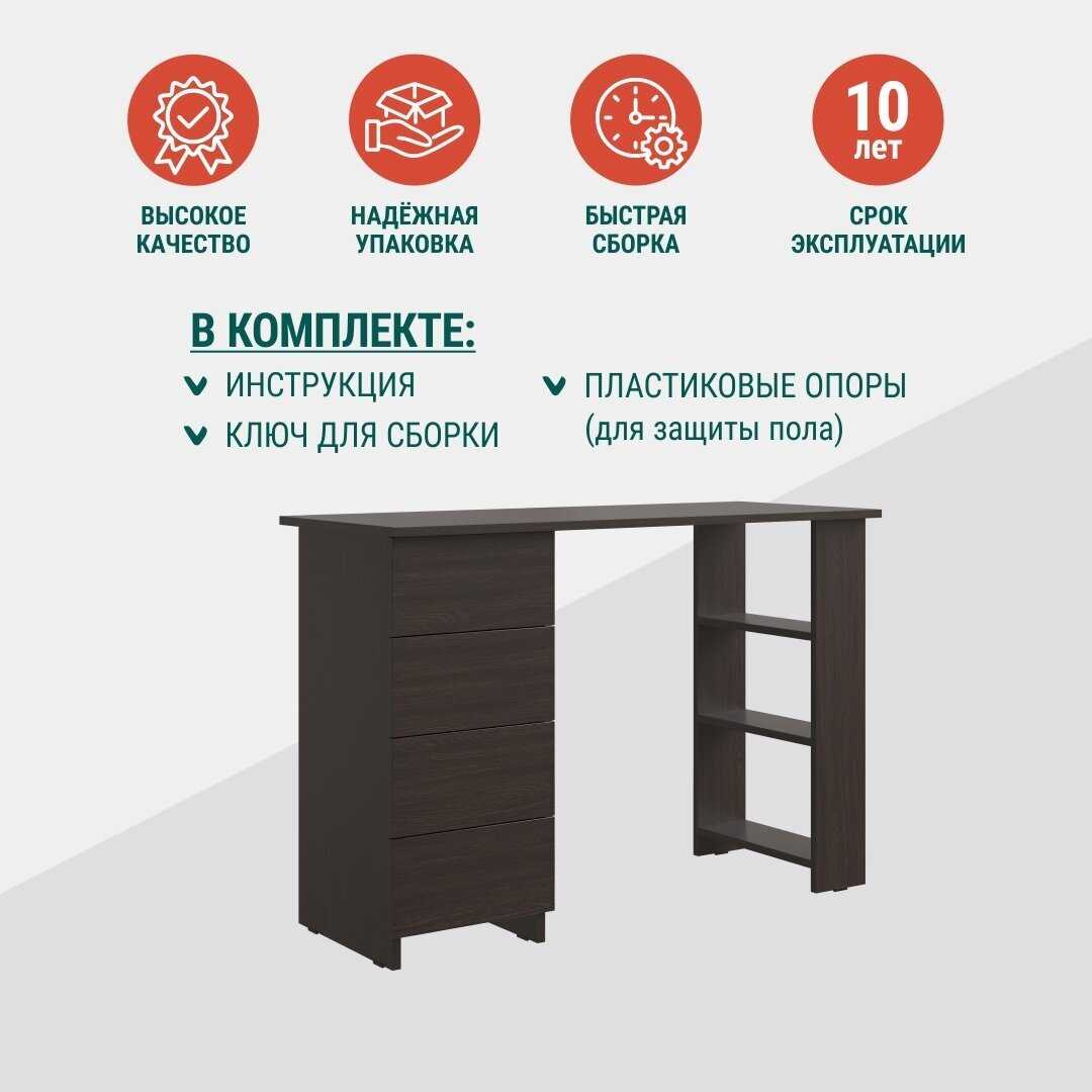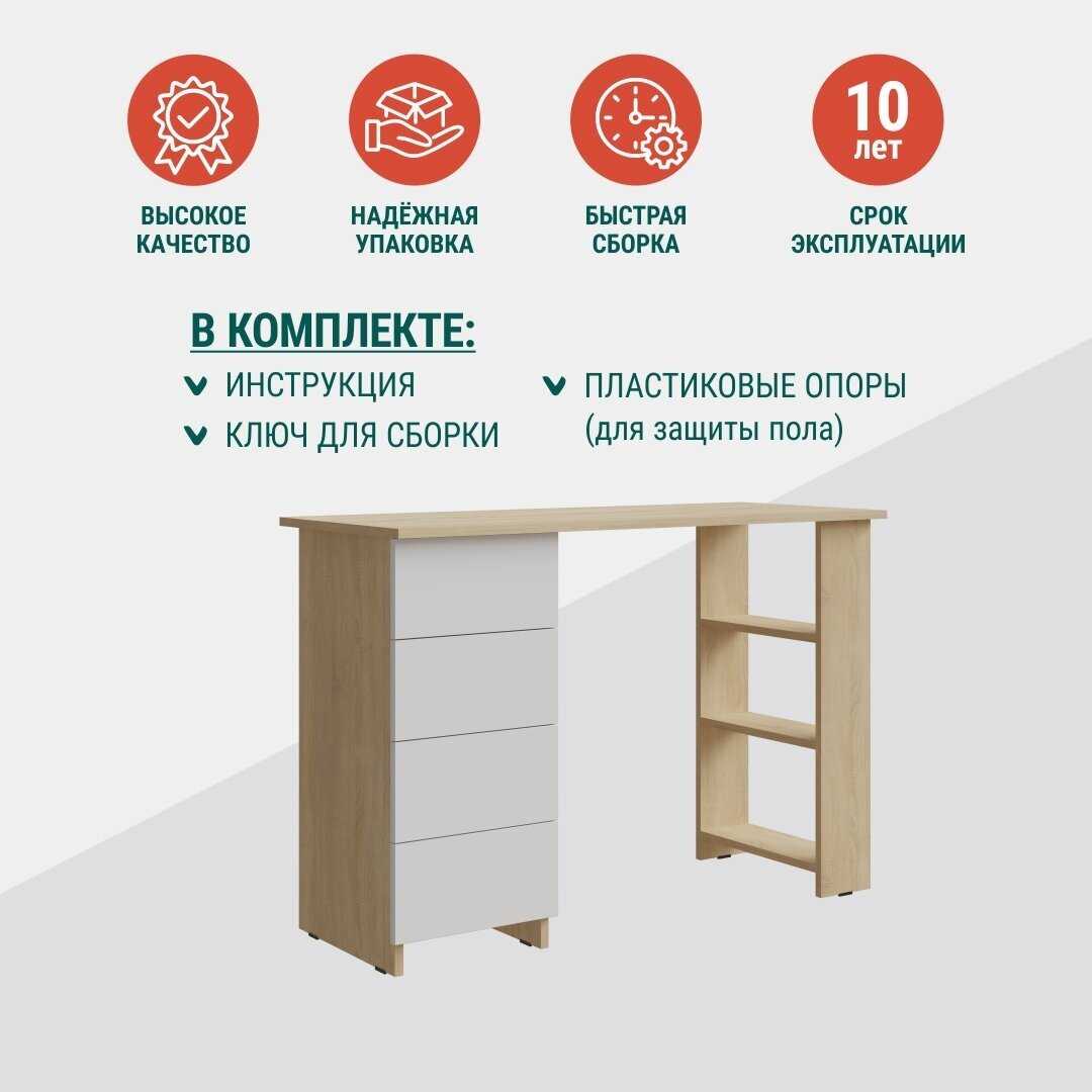 - + Стол письменный выполнен из МДФ, поверхность гладкая, без сколов и неровностей. Минималистично и стильный, отлично вписывается в интерьер. В столе предусмотрены выдвижные ящики и полка для хранения документов, что очень удобно. Простота сборки. Инструкция понятная, собрал самостоятельно за пару часов.