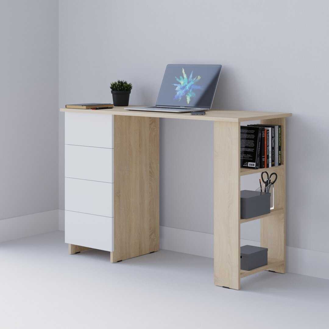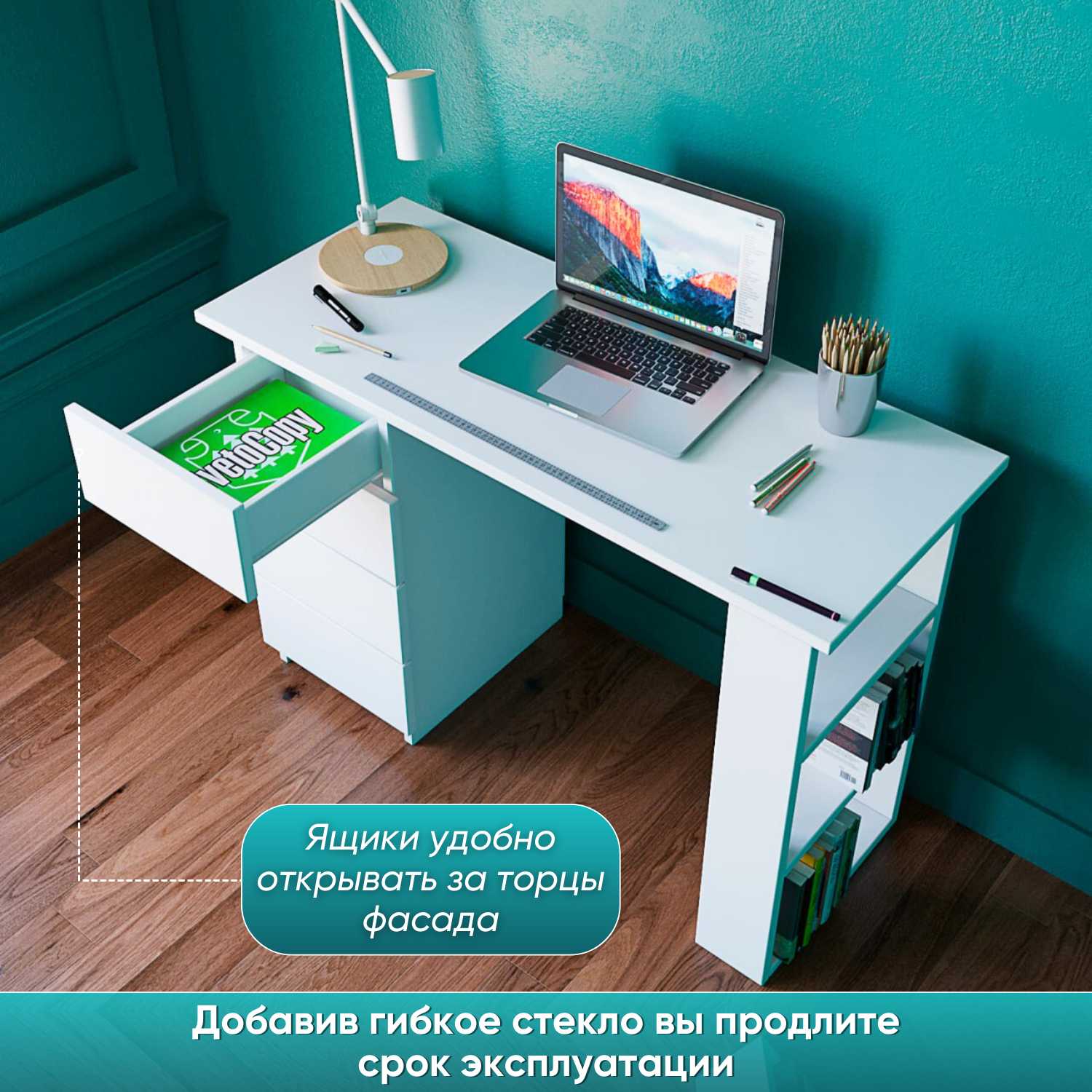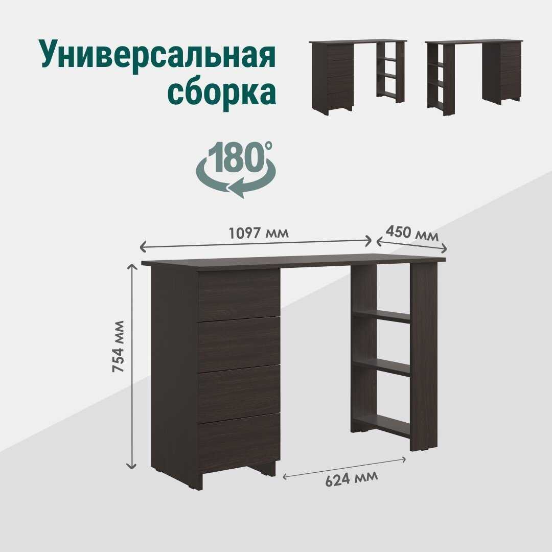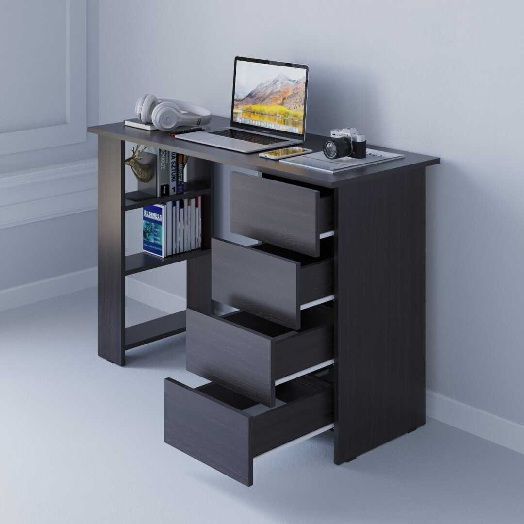 - + Стол письменный выполнен из МДФ, поверхность гладкая, без сколов и неровностей. Минималистично и стильный, отлично вписывается в интерьер. В столе предусмотрены выдвижные ящики и полка для хранения документов, что очень удобно. Простота сборки. Инструкция понятная, собрал самостоятельно за пару часов.
