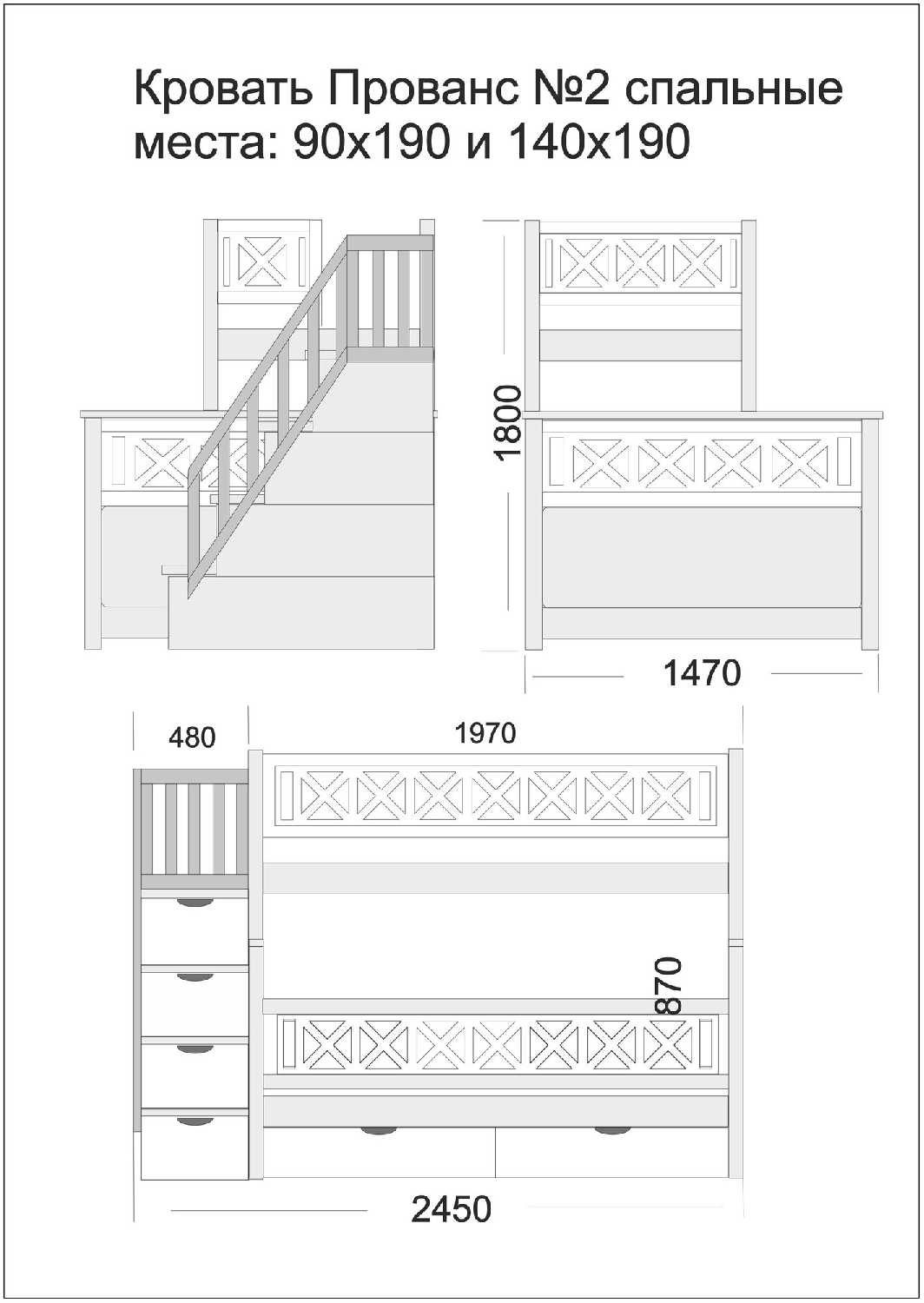 Характеристи мебельная фабрика ДУБРАВА Двухъярусная кровать Прованс №2