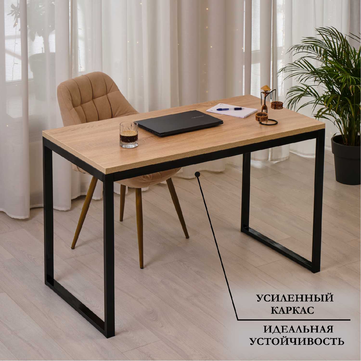 - Лаконичный дизайн без излишеств позволяет столу органично вписываться в различные интерьеры — от домашнего кабинета до офиса и общежития.
