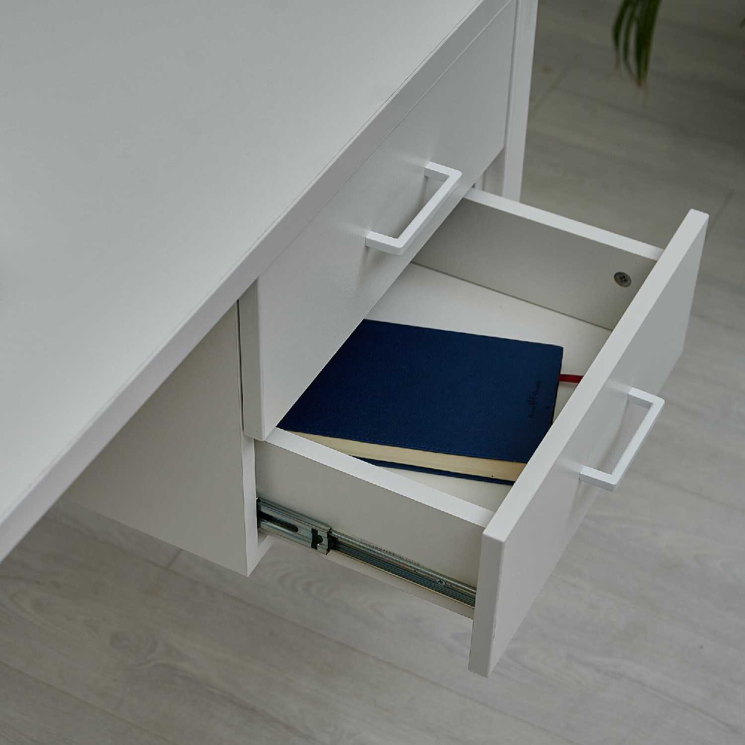 - + Хороший, крепкий стол. Ящики выдвигаются и задвигаются без проблем. Сборка заняла немного времени.