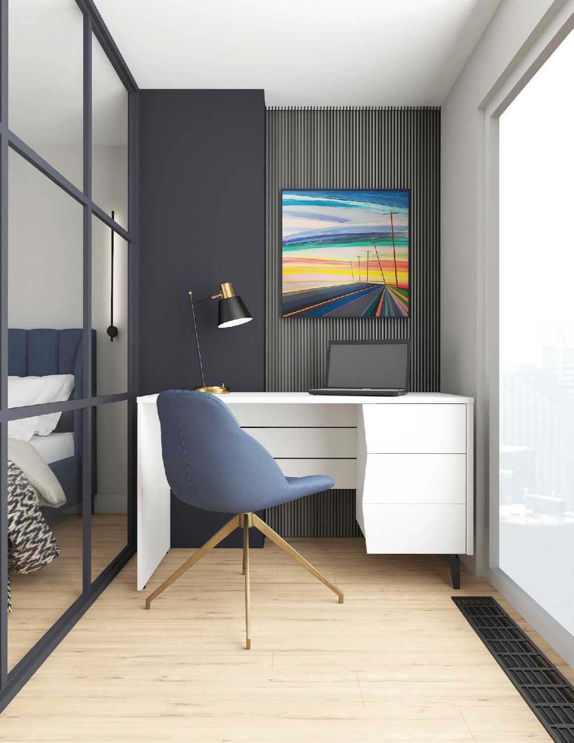 - Современный вид с горизонтальными ламелями эстетично смотрится в комнате, не требуя сверления для монитора.