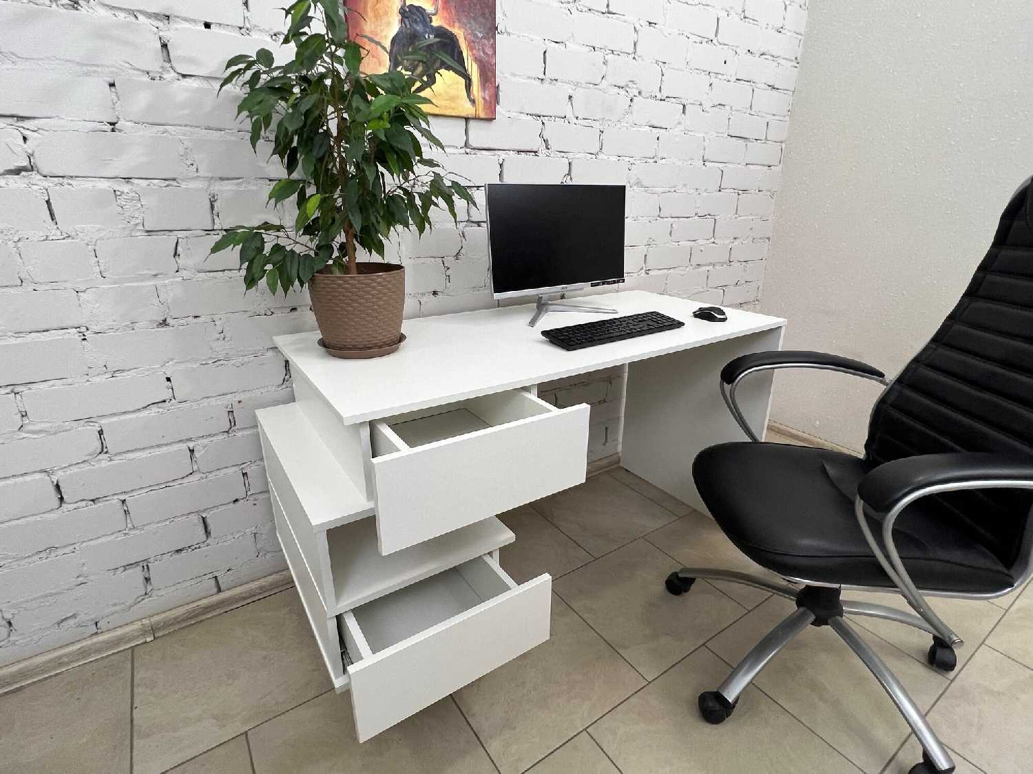 - + Отличный стол, большой, удобный. Купила для оборудования домашнего офиса. Два ящика, полка. Места полно теперь.