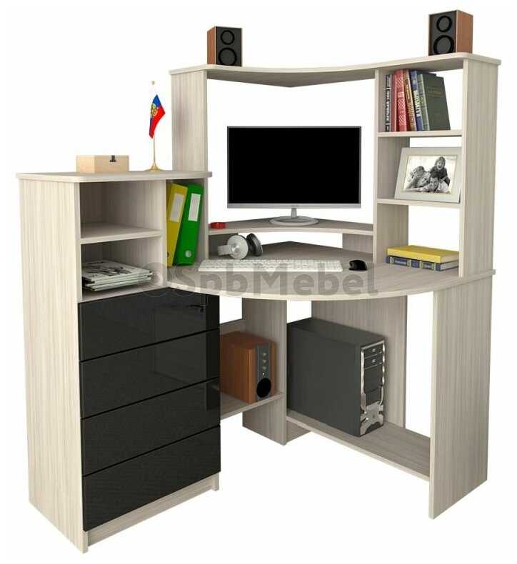 | Особенности : | надстройка, отделение для системного блока, полка для принтера, с тумбой, с ящиком для хранения, угловой |