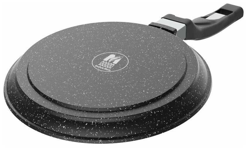 Сковорода отлично совместима с индукционными плитами благодаря цельнометаллическому магнитному дну. Пользователи подтверждают, что она быстро и равномерно нагревается, обеспечивая идеальную прожарку блинов без холодных пятен. Многие отмечают, что дно дополнительно покрыто защитным слоем, что предотвращает царапание стеклокерамической поверхности плиты. -